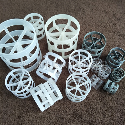 塑料鮑爾環(huán)是一種高徑相等的開孔環(huán)型填料,它是在拉西環(huán)填料的基礎(chǔ)上,在環(huán)壁上開出帶有窗孔,上下兩層窗孔的位置相反錯(cuò)開,一般開孔面積約占環(huán)壁總面積的30%左右。在未增加填料表面積的情況下,卻大大改善了填料層內(nèi)氣液兩相的流動(dòng)情況,提高了填料的流體力學(xué)與傳質(zhì)性能。其形狀結(jié)構(gòu)可分為內(nèi)筋為米子型,稱為塑料鮑爾環(huán)(米);內(nèi)筋為井字形,稱為塑料鮑爾環(huán)(井);內(nèi)筋為十字型,稱為塑料鮑爾環(huán)(十)。