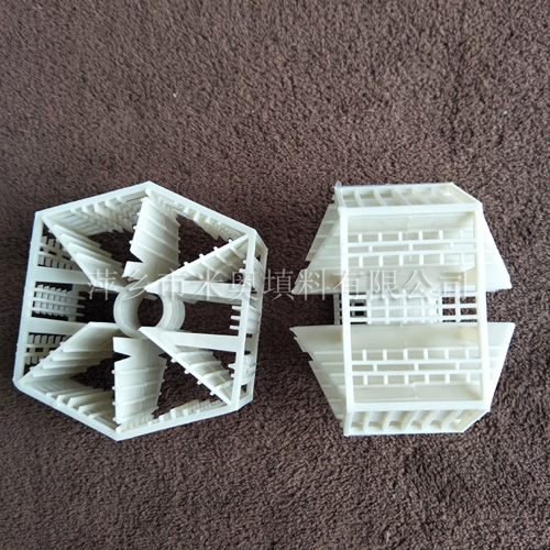 塑料六棱環(huán)填料其外形獨特的設計,可提供表面的排氣和洗滌液通道,促進液滴與連續(xù)形成填充介質之間的傳質和混合、分布分散及表面促進作用,同時小化充分平布和填料深度。產品有非常高的凈化效率,已被證明是具有高液體負荷應用很好的塔填料。PPH棱形環(huán)填料這種優(yōu)良的結構特點采用低得多的鮑爾環(huán)直徑的高度比有利于在較低的壓力降和較高的能力,結果導向的演變;產品優(yōu)良的機械強強度,耐化學腐蝕性能好。