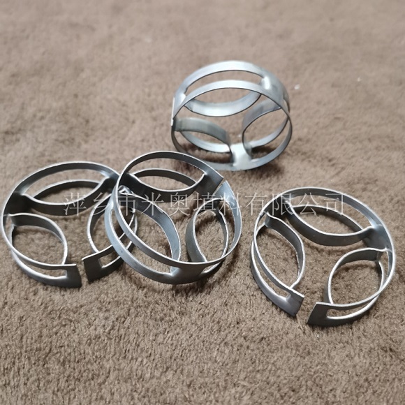 扁環(huán)填料,屬于短開孔環(huán)型填料,簡(jiǎn)稱為QH-1型或SMR(Super Mini Ring ),此填料用于低界面張力體系的液液萃取過(guò)程,軸向混合小,處理能力大,其傳質(zhì)效率可提高20%以上;用于中等界面張力體系的液液萃取過(guò)程時(shí),其液體負(fù)荷可達(dá)50~60m3/(m2.h);此種填料也可適用于氣液傳質(zhì)過(guò)程。